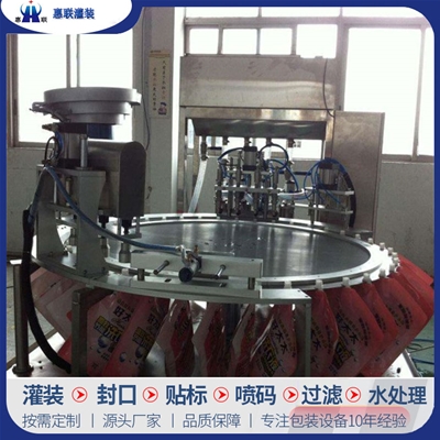 青州市惠聯(lián)灌裝機械有限公司是一家集生產(chǎn)研發(fā)、銷售、服務于一體的液體灌裝成套設備生產(chǎn)企業(yè),可根據(jù)廠家要求設計合理液體灌裝生產(chǎn)線,為用戶提供技術咨詢、設計工藝、場區(qū)平面布置、工藝改造、設備安裝調(diào)試等完善服務。 公司生產(chǎn)制造各種類型液體灌裝機、過濾機,水處理設備及液體灌裝成套設備。主要產(chǎn)品有:白酒、葡萄酒、黃酒等酒水灌裝機、食用油、機油、潤滑油等油類灌裝機、醬油醋、老抽、生抽等調(diào)味品灌裝機、防凍液、玻璃水灌裝機、酒精、84消毒液灌裝機、車用尿素灌裝機、口服液灌裝機、洗滌劑灌裝機等多種液體、膏體灌裝設備,全自動/半自動灌裝機型號多,規(guī)格全,洗瓶機、瓶子封口機、打塞機、熱縮機、瓶子烘干機、貼標機、噴碼機、輸送線、裝箱機、水處理設備等全套生產(chǎn)線相關配套設備齊全,自產(chǎn)自銷,一站式購齊,售后無憂。